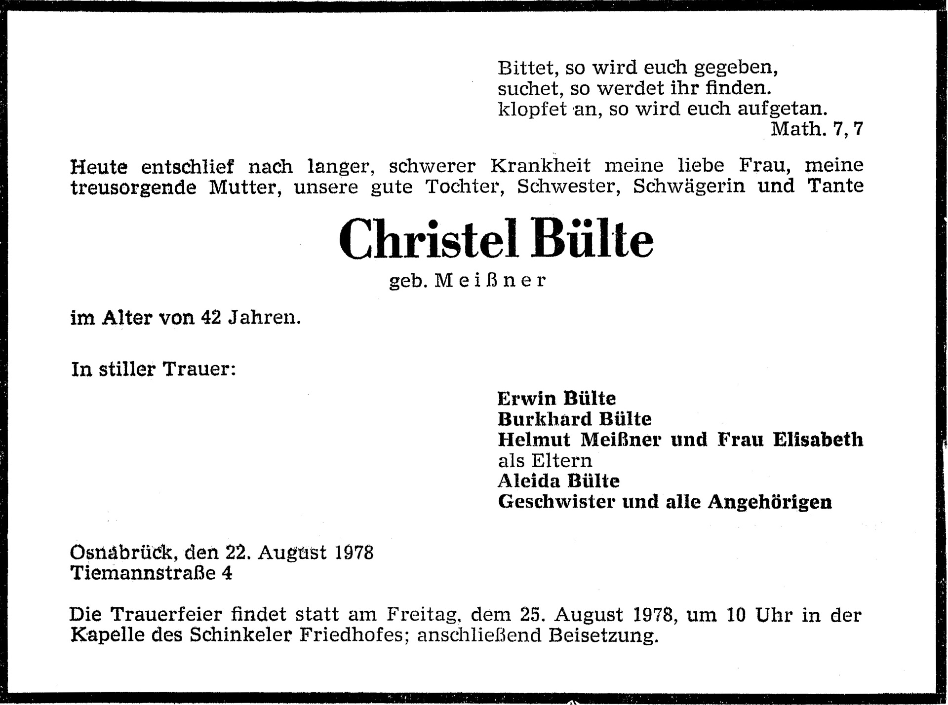In Gedenken an Christel Bülte